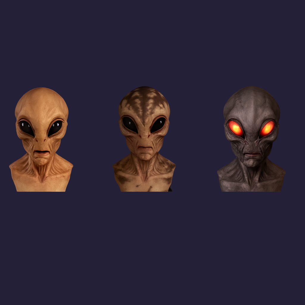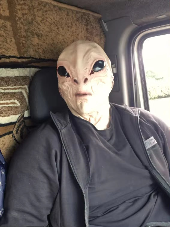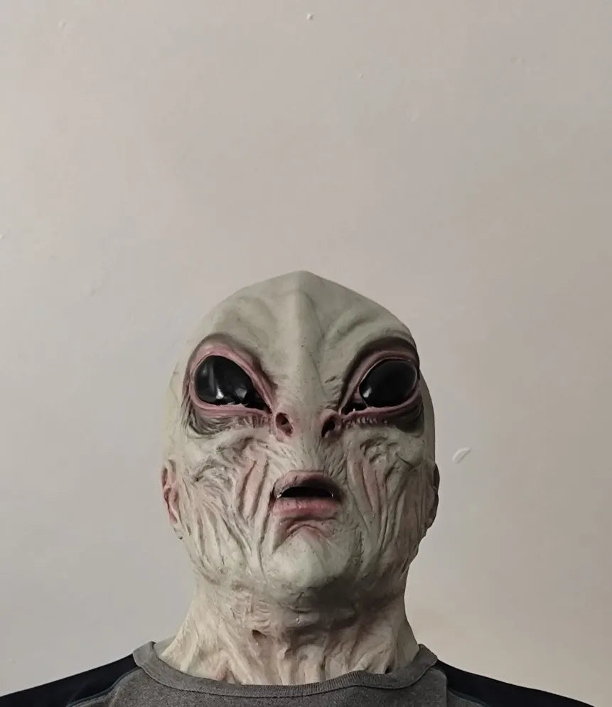 Crafted from 100% natural latex, this premium full-head alien mask features detailed textures, realistic shading, and striking oversized eyes. Flexible and breathable for most adults, it offers comfort with durability. Perfect for cosplay, performances, Halloween, or themed events, this mask guarantees a commanding, realistic presence that impresses every time.